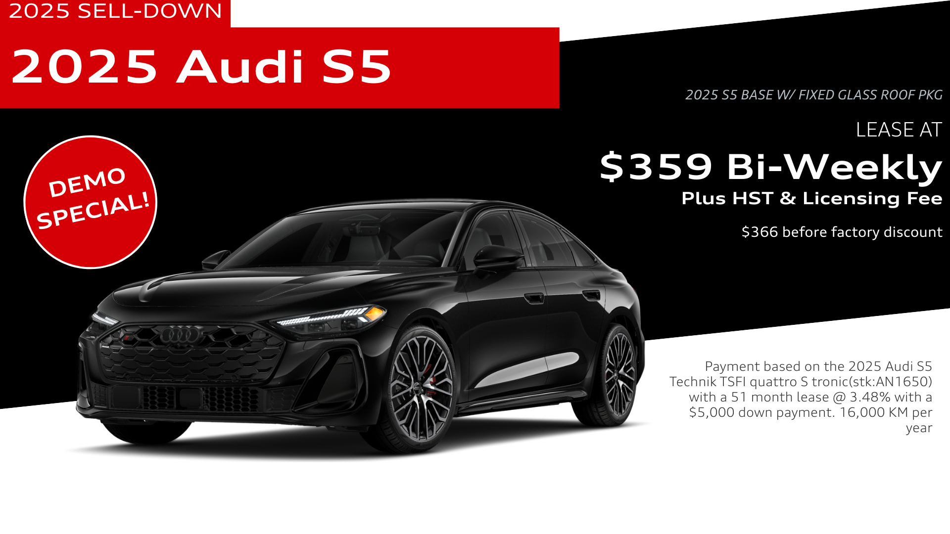Lease Example – 2025 Audi S5 Base Stock #: AN1650 | Colour: Mythos Black